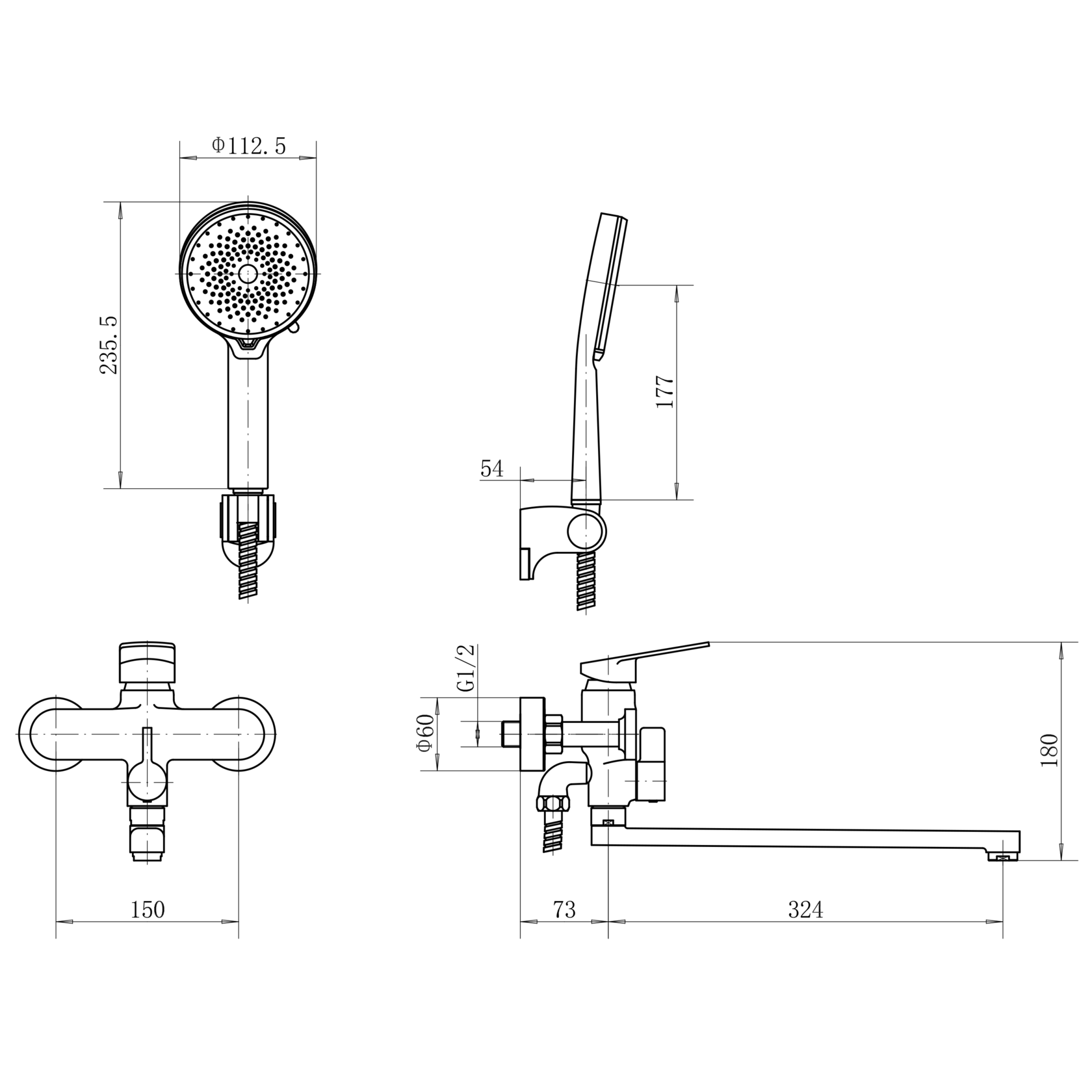 смеситель ванно-душевой с душевым гарнитуром