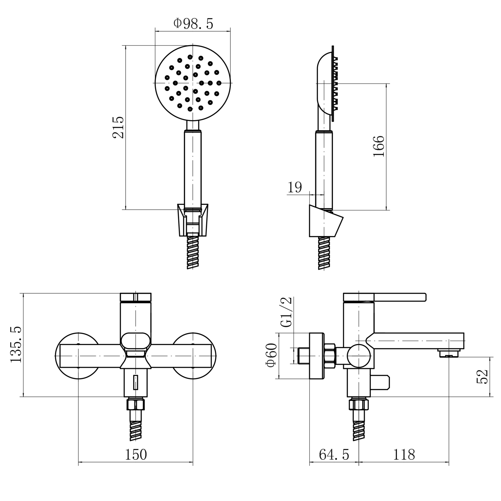 смеситель ванно-душевой с душевым гарнитуром