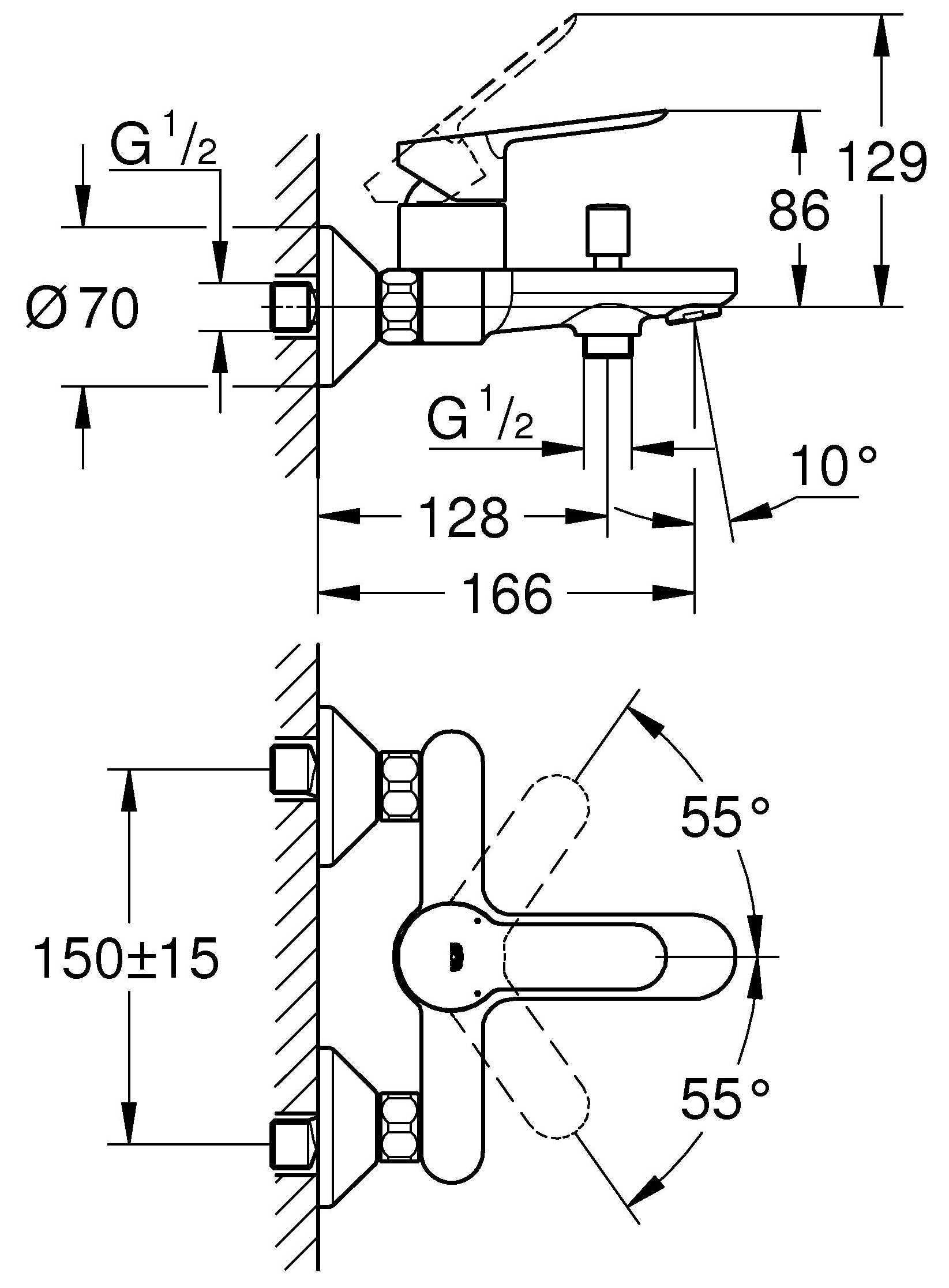 Смеситель для ванны и душа Grohe BauEdge (23605000)