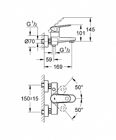 Смеситель для ванны и душа Grohe Europlus 2 (33553002)