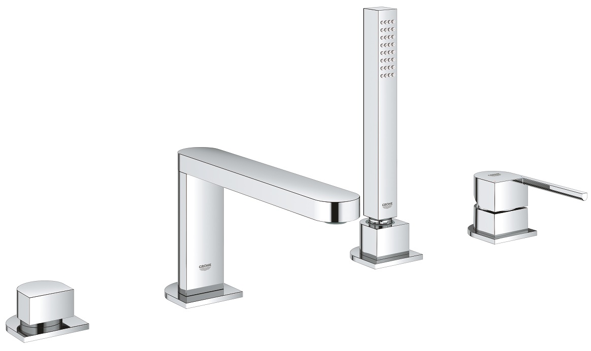 смеситель на борт ванны, GROHE StarLight хромированная поверхность, элемент управления однорычажного смесителя, металлический рычаг, переключатель ванна/душ, Euphoria Cube Ручной душ 6,6 л/мин, металлический душевой шланг 2000 мм, гибкая подводка, подключение для душевого шланга