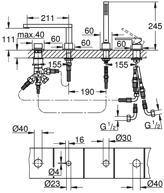 Комплект для ванны GROHE на 4/5 отверстий (29037002)
