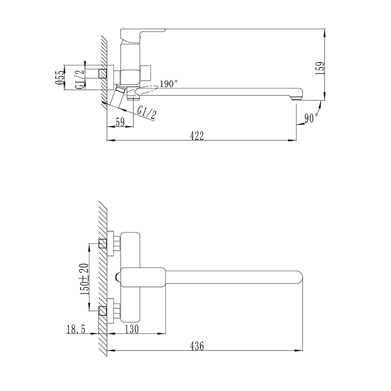 Смеситель для ванны Iddis Brick c длинным изливом и керамическим дивертором (BRISBL02i10)