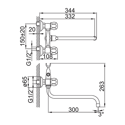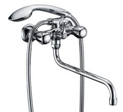 двухзахватный смеситель, латунь, увеличенное никель-хромовое покрытие, керамические кран-буксы, дивертор флажкового типа.