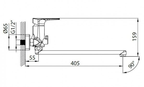 Смеситель для ванны и душа с длинным изливом, латунь, увеличенное никель-хромовое покрытие, керамический дивертор, керамический картридж 35 мм Kerox, пластиковый аэратор Neoperl.
