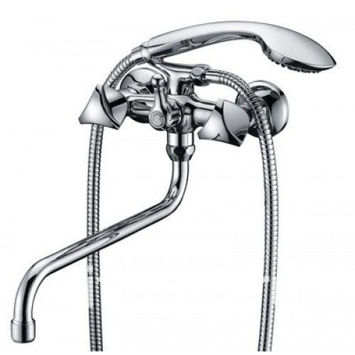 двухзахватный смеситель, латунь, увеличенное никель-хромовое покрытие, керамические кран-буксы, дивертор флажкового типа.