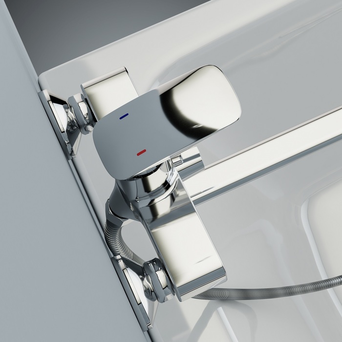 - Смеситель для ванны Stone с дизайнерской утолщенной ручкой. Она обладает улучшенной эргономикой и благодаря продуманной форме удобно ложится в руку, что делает управление смесителем более комфортным. Без душевых аксессуаров в комплекте.