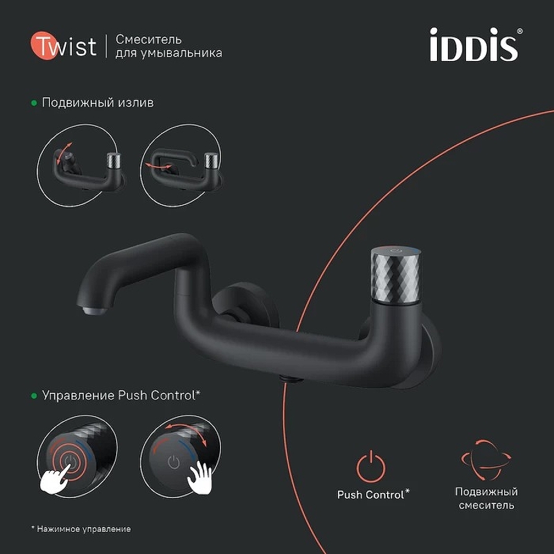 Смеситель для ванны и душа Iddis Twist черный (TWIBLBTi02WA)