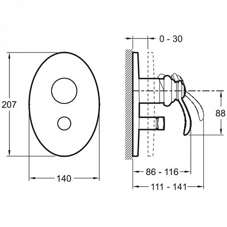 Смеситель для ванны и душа Jacob Delafon Fairfax внешняя часть, хром (E98722-CP)