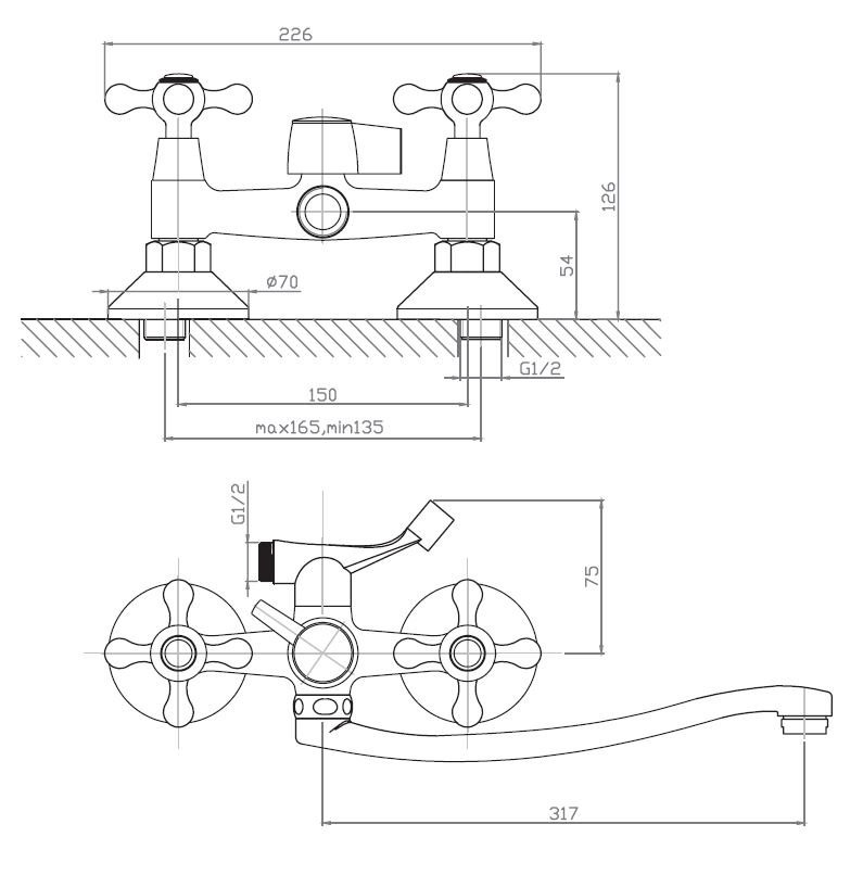 Излив: поворотный, 300 мм Кран-буксы: универсальные, ход 90 градусов