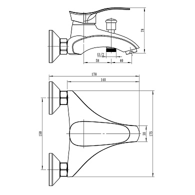 Смеситель для ванны и душа L3001 хром, короткий излив Ligeya (L3001 Ligeya)