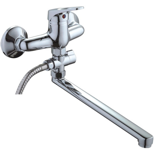 Смеситель LEDEME L2113 из серии H13 предназначен для использования в ванной комнате. Смешивание горячей и холодной воды происходит с помощью керамического картриджа диаметром 35 мм. Смеситель однорычажный, с плоским изливом длиной 300 мм, с кнопочным переключателем на душ.
