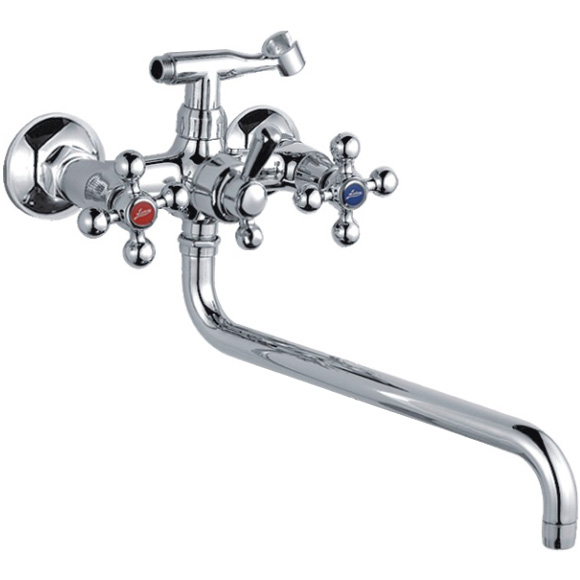 Смеситель LEDEME L2619-2 из серии H19 предназначен для использования в ванной комнате. Смешивание горячей и холодной воды происходит с помощью двух металлических крестообразных маховиков и керамических кран-букс, Смеситель с круглым изливом длиной 300 мм с рычажковым шаровым переключателем на душ.