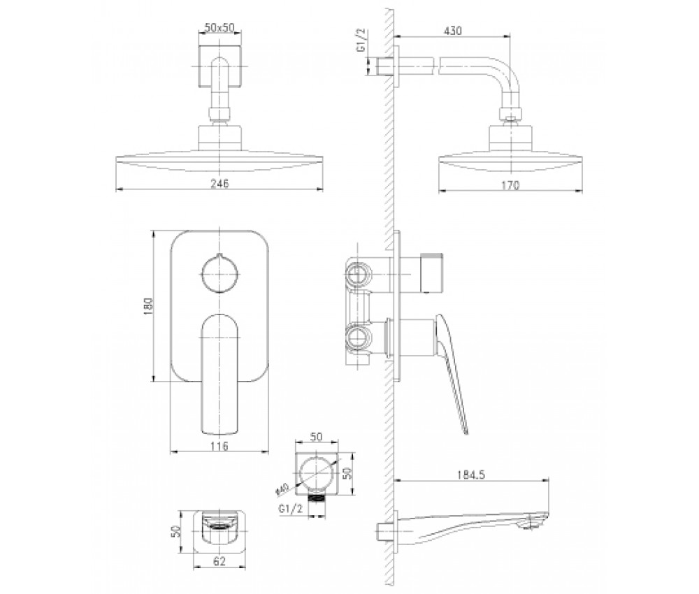 - Гарнитур подходит для использования как в ванне, так и в душевой кабине.