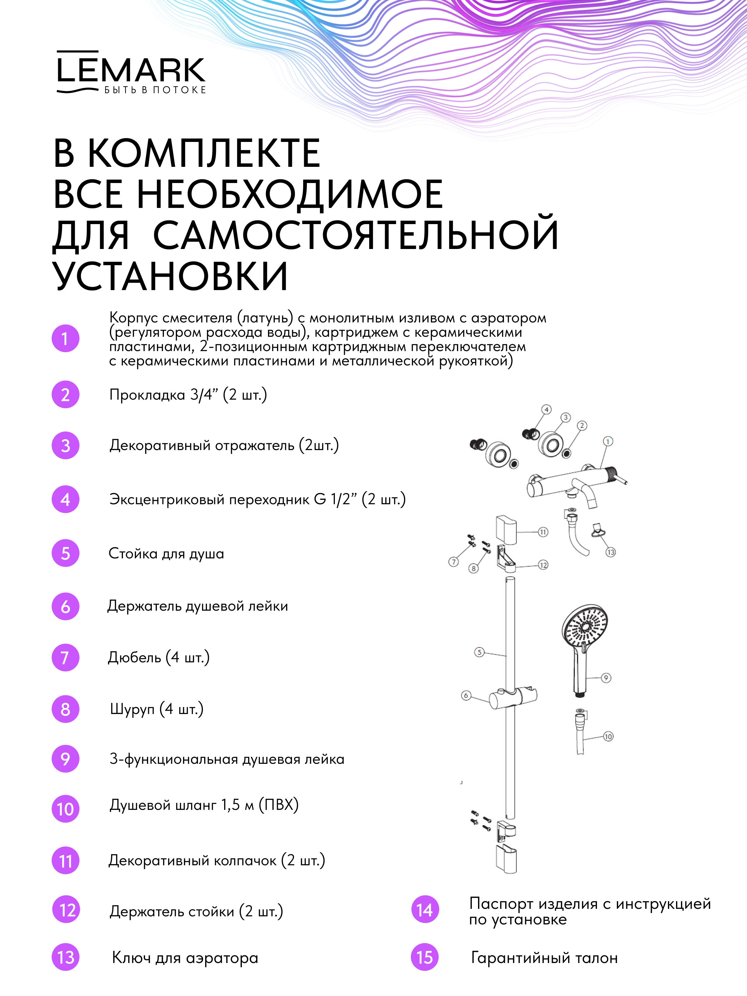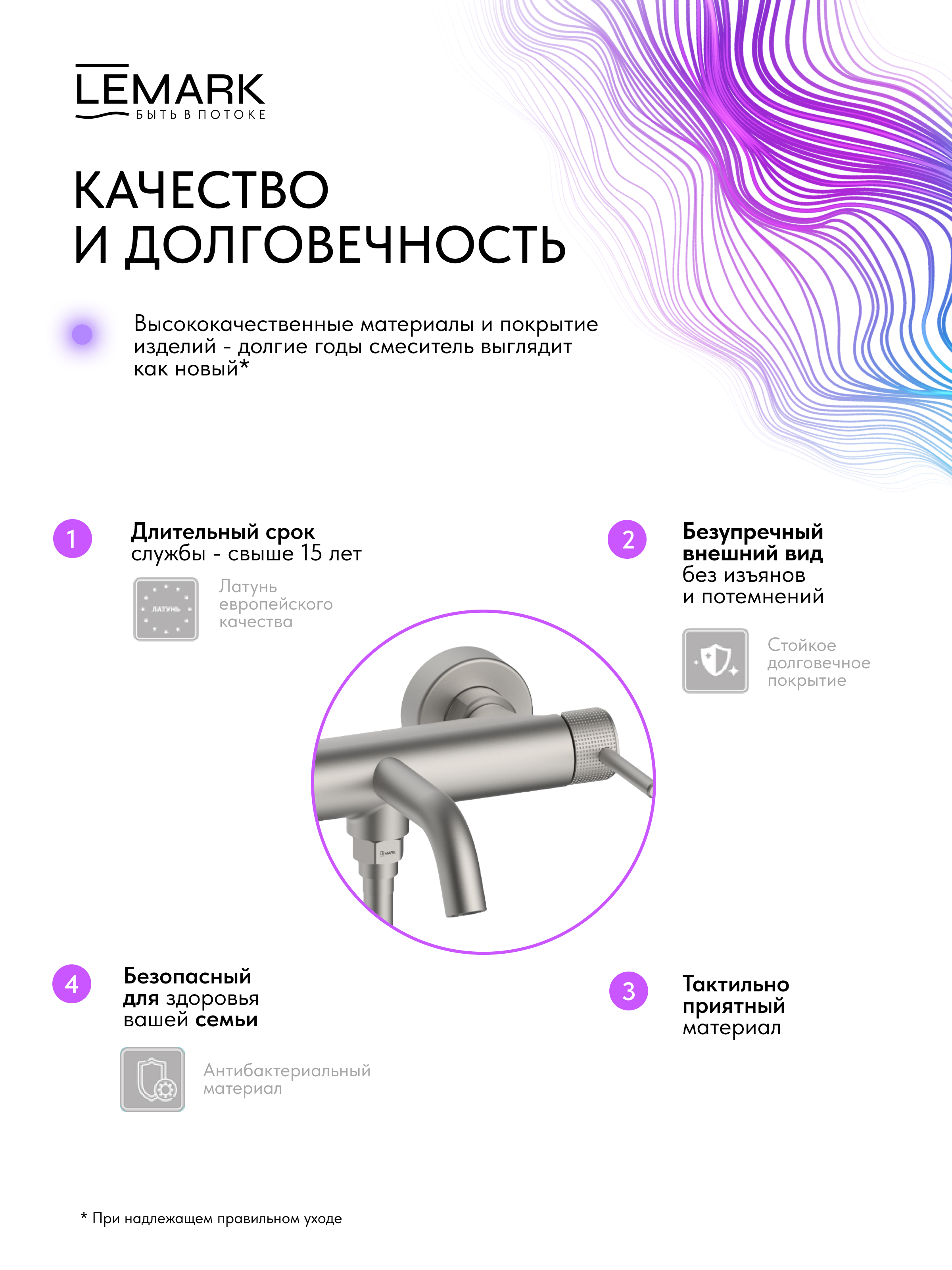 Срок службы смесителя – 15 лет / аксессуаров - 5 лет