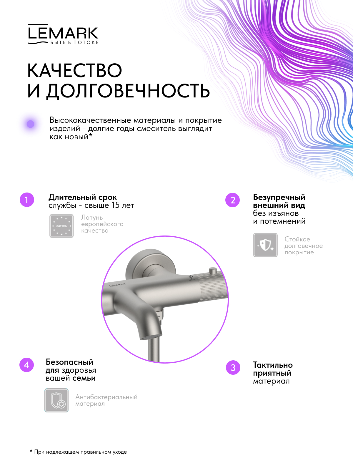 Срок службы смесителя – 15 лет / аксессуаров - 5 лет