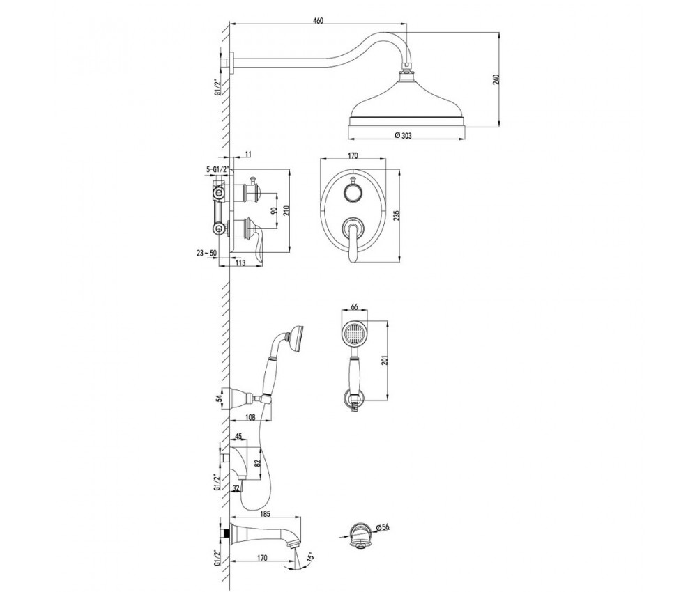 - Ручной душ работает в одном режиме подачи воды и фиксируется к стене при помощи поворотного крепления. Душевой шланг 2 м.