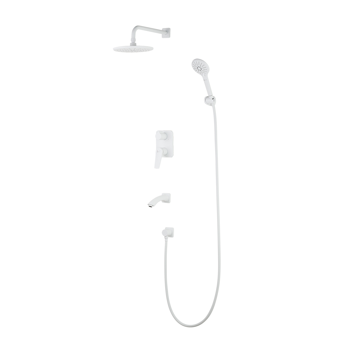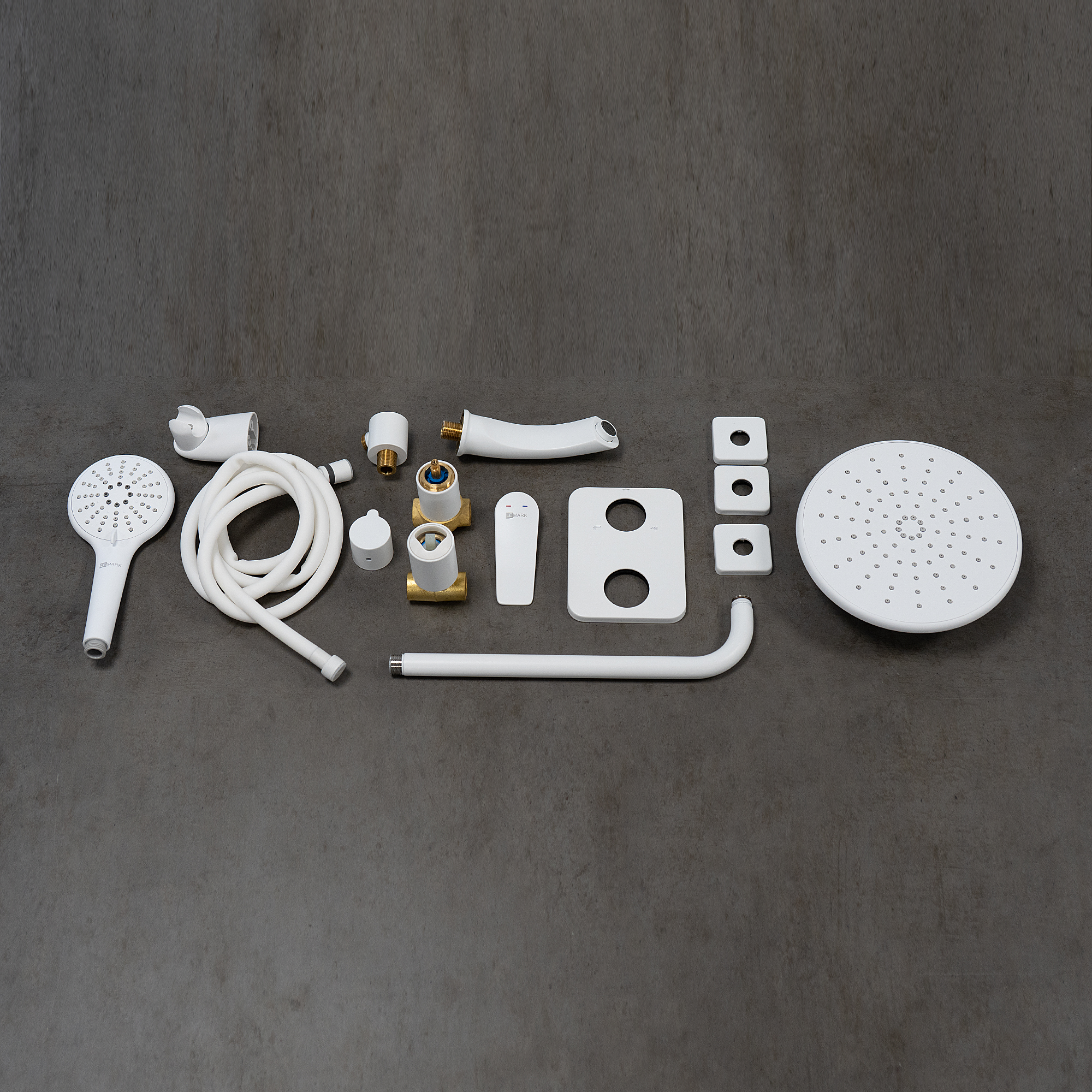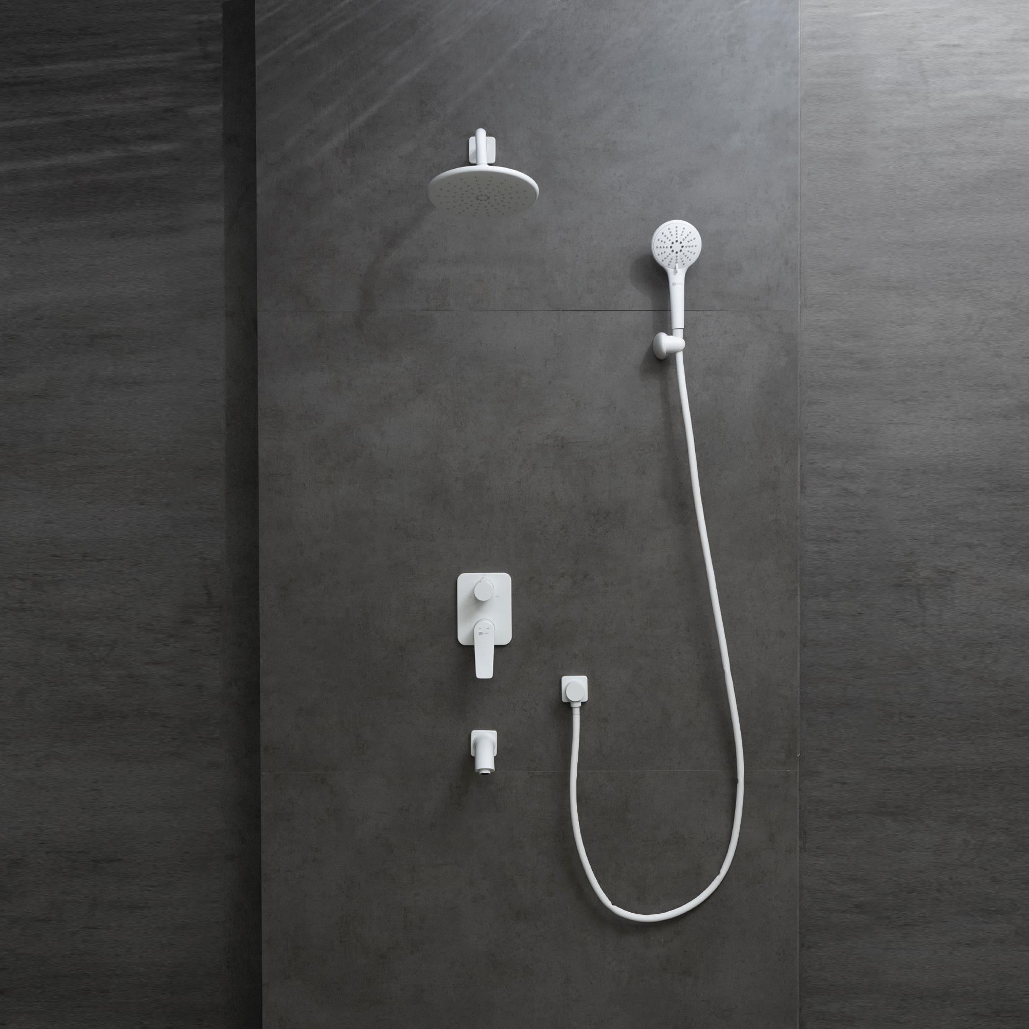 Встраиваемый смеситель с верхним душем ?22,6 см, лейка 3 режима ?110 мм, излив 16 см, латунь/белый матовый