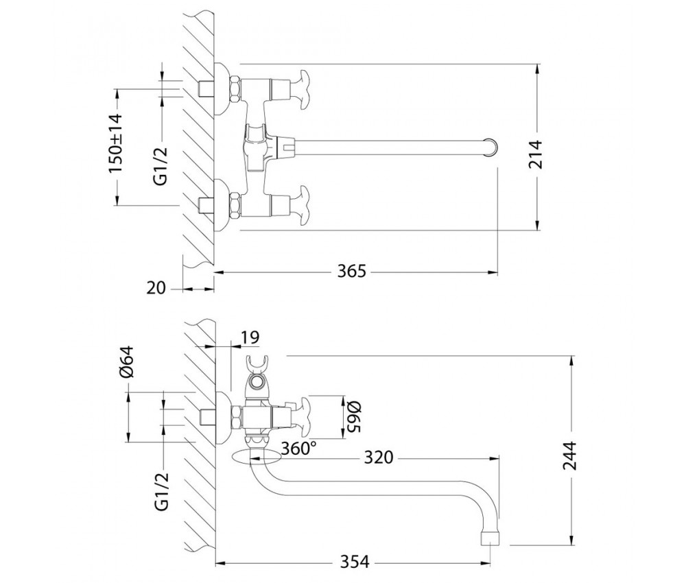 - Двухвентильное управление с углом поворота рукояток 90 градусов.