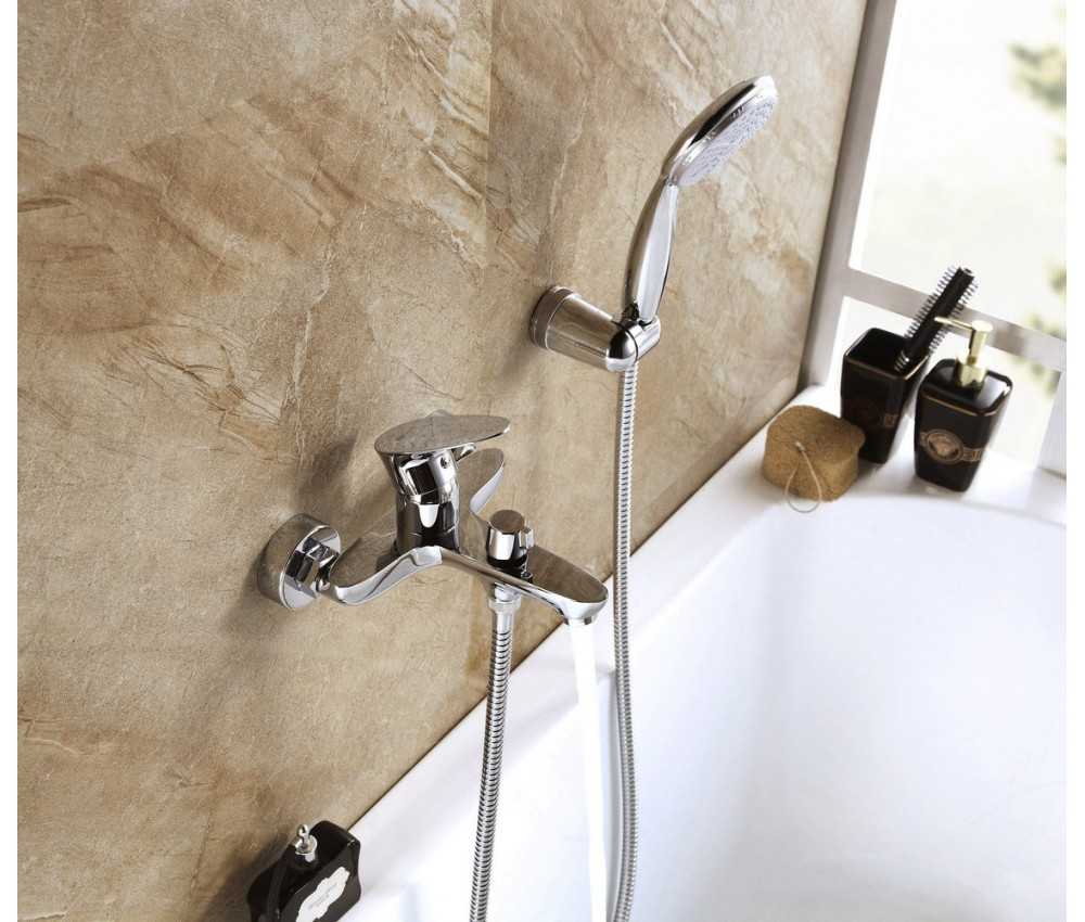 - Смеситель комплектуется ручной лейкой эргономичной формы, настенным поворотным креплением и шлангом.