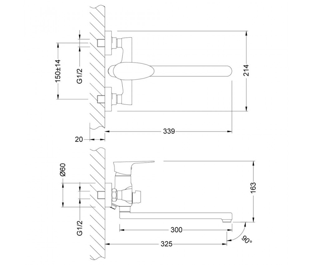 - В комплект входит душевой гарнитур: лейка с одним режимом работы, полутораметровый шланг и настенный поворотный держатель.
