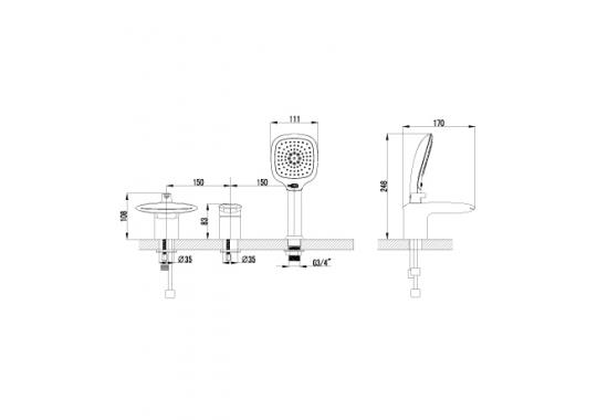 Смеситель для ванны и душа Lemark Status встраиваемый на 3 отверстия (LM4445C)