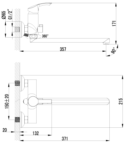 - Обеспечивает одновременную подачу воды в раковину и ванну, удобен в помещении небольшой площади.