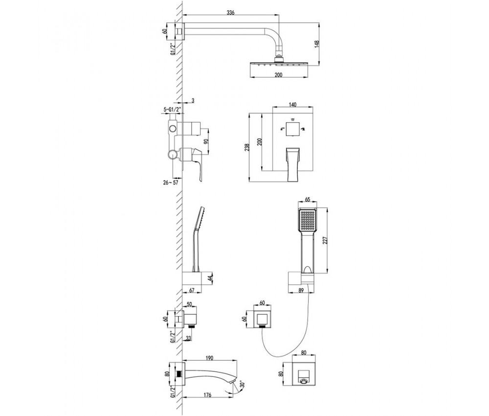 - Поворотный верхний душ размером 20х30 см снабжен комфортным режимом «Тропический дождь», который придает водным процедурам дополнительные приятные ощущения.