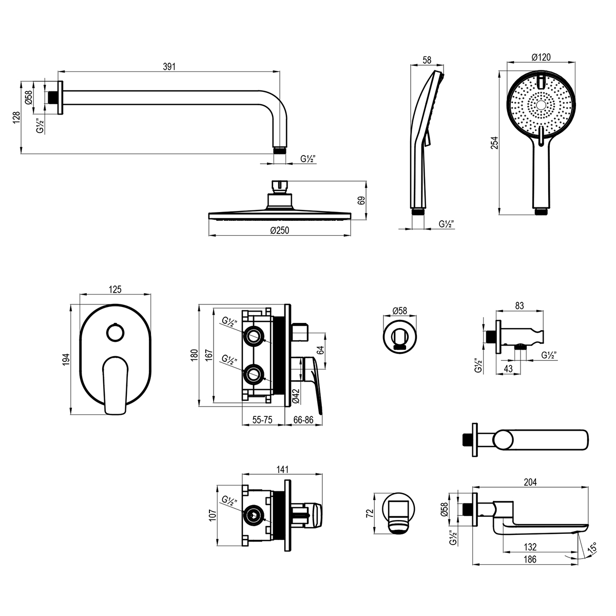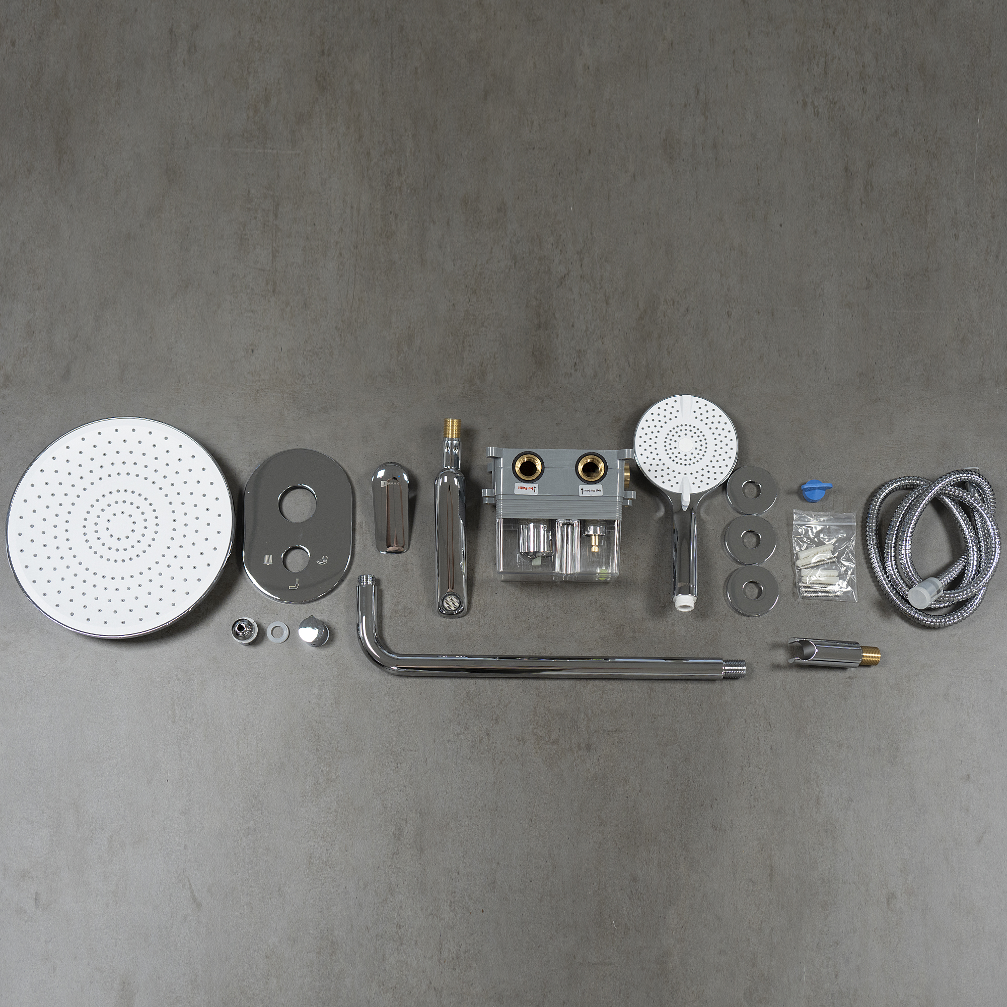 Встраиваемый смеситель с верхним душем ?25 см, лейка для душа ?120 мм, поворотный излив 18,6 см, латунь/хром