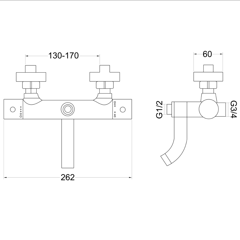 Смеситель термостатический для ванны с поворотным изливом для подключения к душевым системам