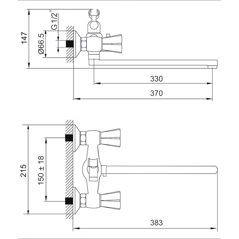 Смеситель ванна MELODIA Galant длинный плоский излив керамика MDV 32141, лейка 1ф.75мм, круглая