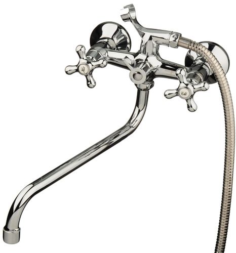 Смеситель для ванны MELODIA Galateo MDV 40241 изготовлен из высококачественной хромированной латуни, обладает повышенной прочностью, коррозионной стойкостью, регулировка подачи и температуры воды происходит с помощью двух маховиков с керамическими кран-буксам.