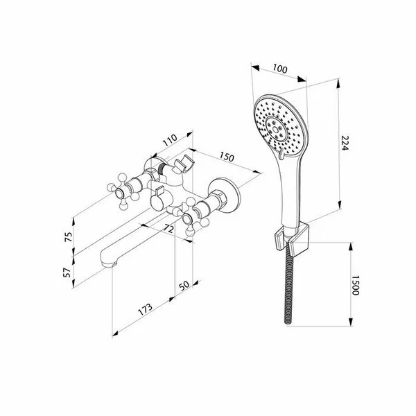 Смеситель для ванны и душа Milardo Duplex с душевым комплектом, хром (DUPSB02M02)