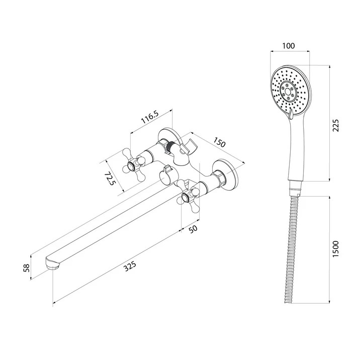 Смеситель для ванны и душа Milardo Duplex с душевым комплектом, хром (DUPSBL2M10)