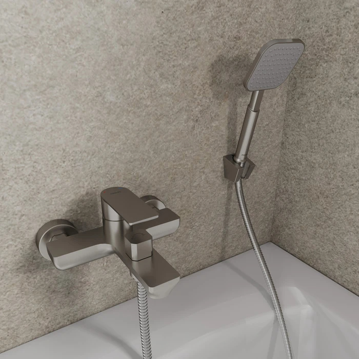 Смеситель для ванны и душа Milardo Maze с душевым гарнитуром сатин (MAZBN00M02)
