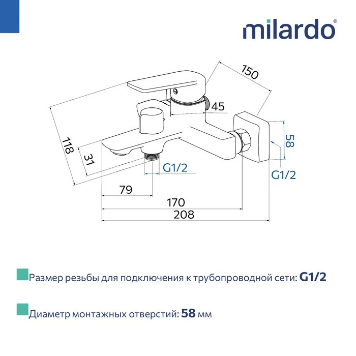 Смеситель для ванны, однозахватный, ABS-пластик, никель-хромовое покрытие, керамический картридж 35 мм, пластиковый аэратор, поворотный дивертор. В комплекте: лейка O66 мм из ABS-пластика (1 режим), держатель, шланг в металлической оплетке 150 см, эксцентрики c отражателями, комплект прокладок. Упаковка: картонная коробка, индивидуальный мешок.