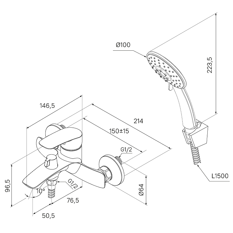 Смеситель для ванны и душа Milardo Rora с душевым комплектом, белый (RORWT00M02)