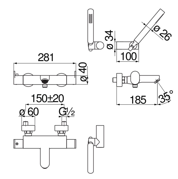 Смеситель для ванны и душа Nobili UP хром, с душевым набором (UP94010CR)
