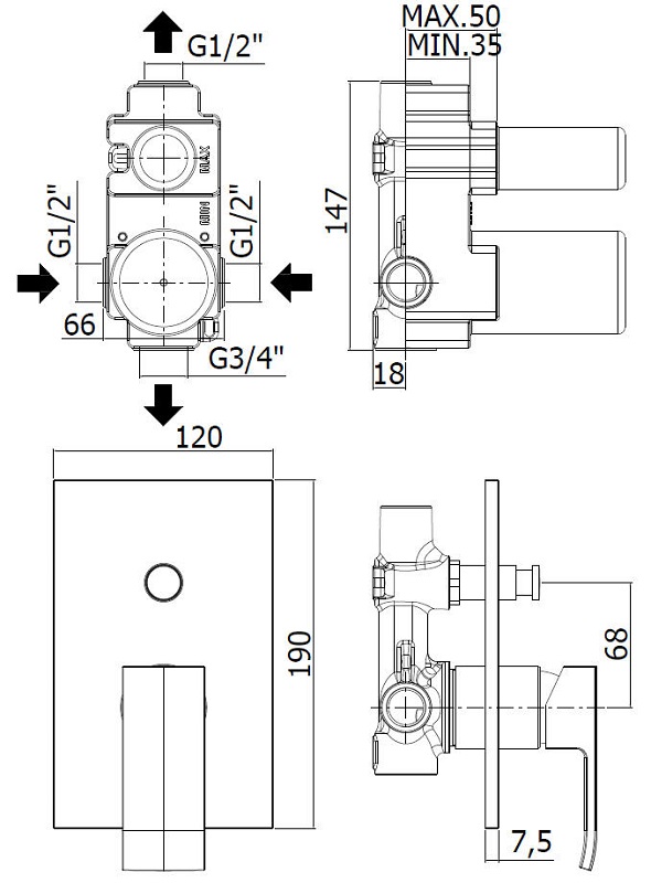Смеситель для ванны и душа Paffoni Elle с внутренней частью, хром (EL015CR/M)