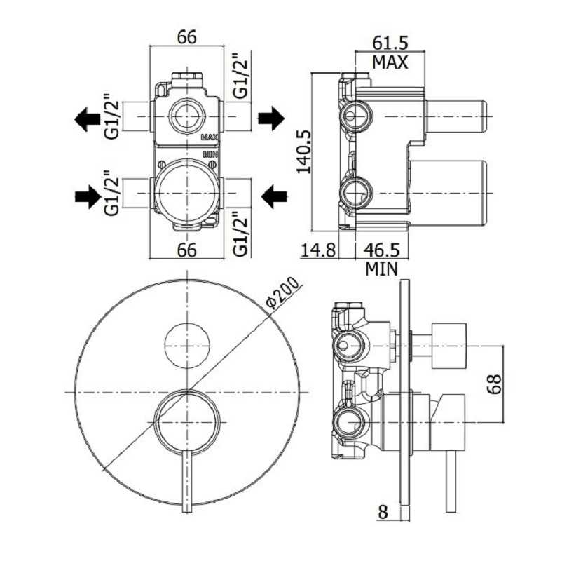 Смеситель для ванны и душа Paffoni Light с внутренней частью, хром (LIG018CR)