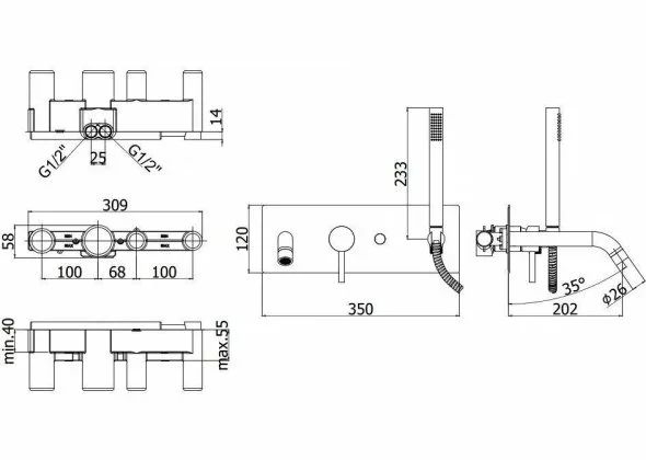 Смеситель для ванны и душа Paffoni Light термостатический, золотой (LIG001HGSP)