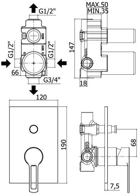 Смеситель для ванны и душа Paffoni Ringo с внутренней частью, белый (RIN015BO/M)