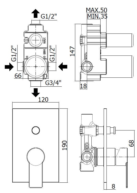 Смеситель для ванны и душа Paffoni Tango с внутренней частью, хром (TA015CR/M)