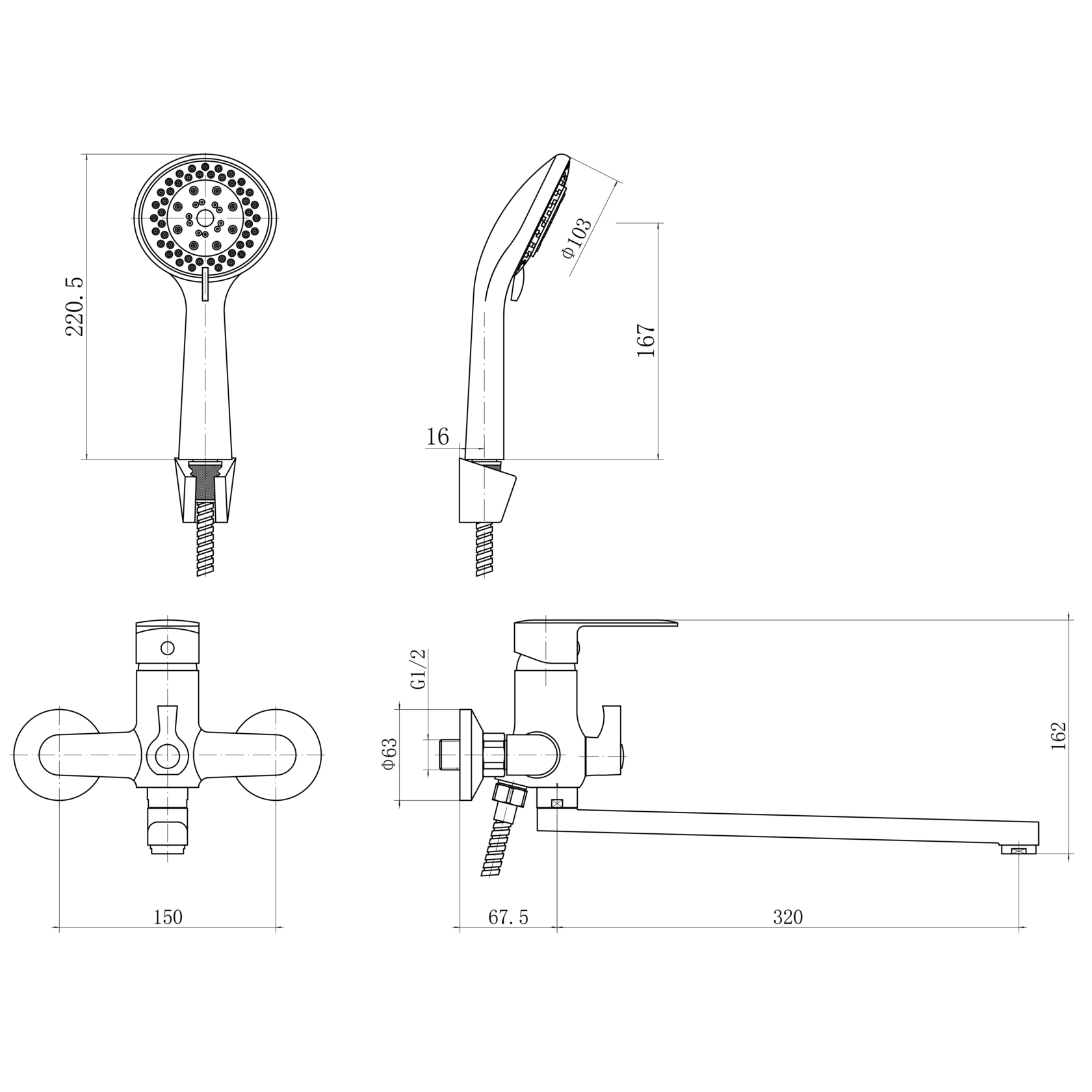 шланг: L=1500 мм, оплётка сталь SUS201, чёрный