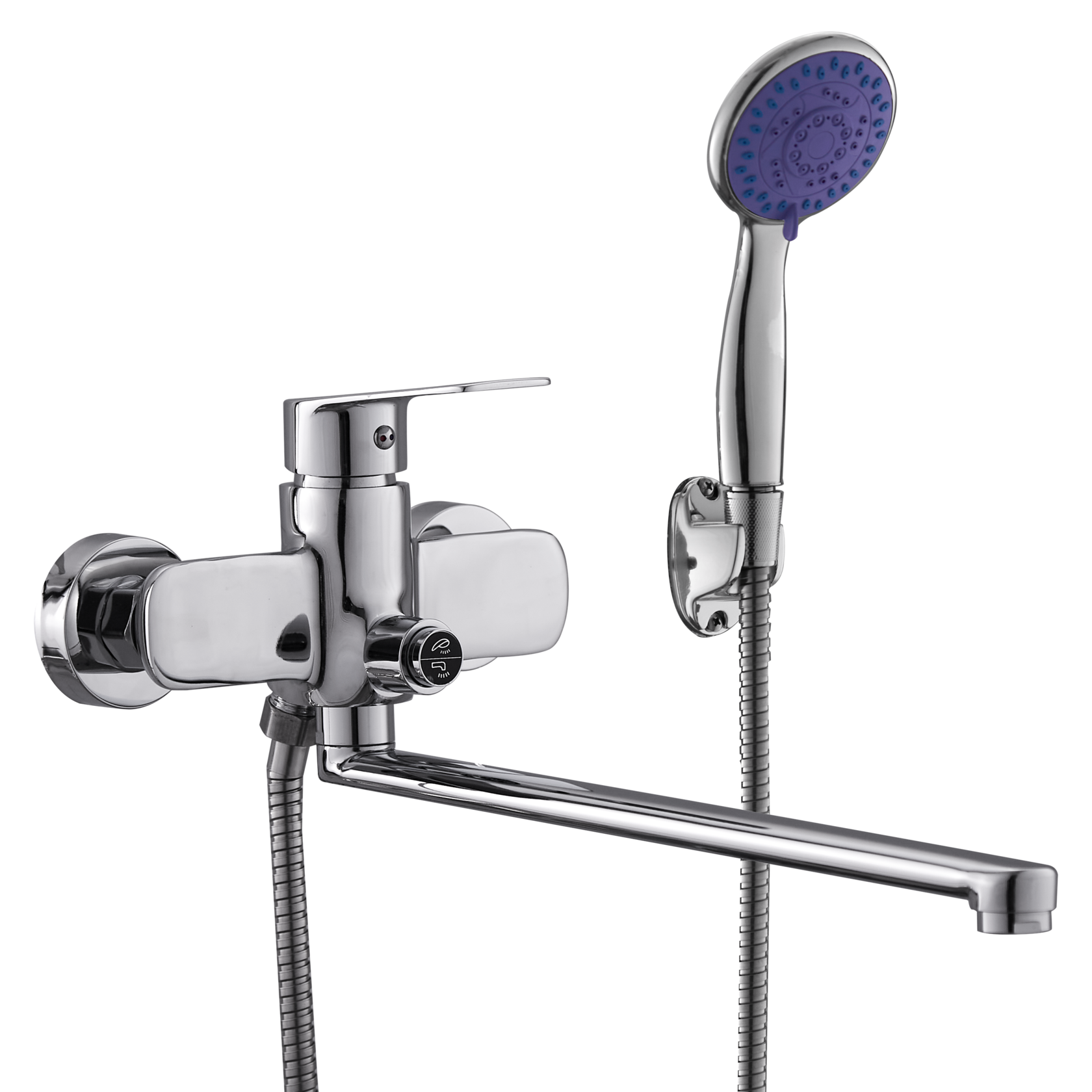 смеситель ванно-душевой с душевым гарнитуром и кнопочным дивертором, хром