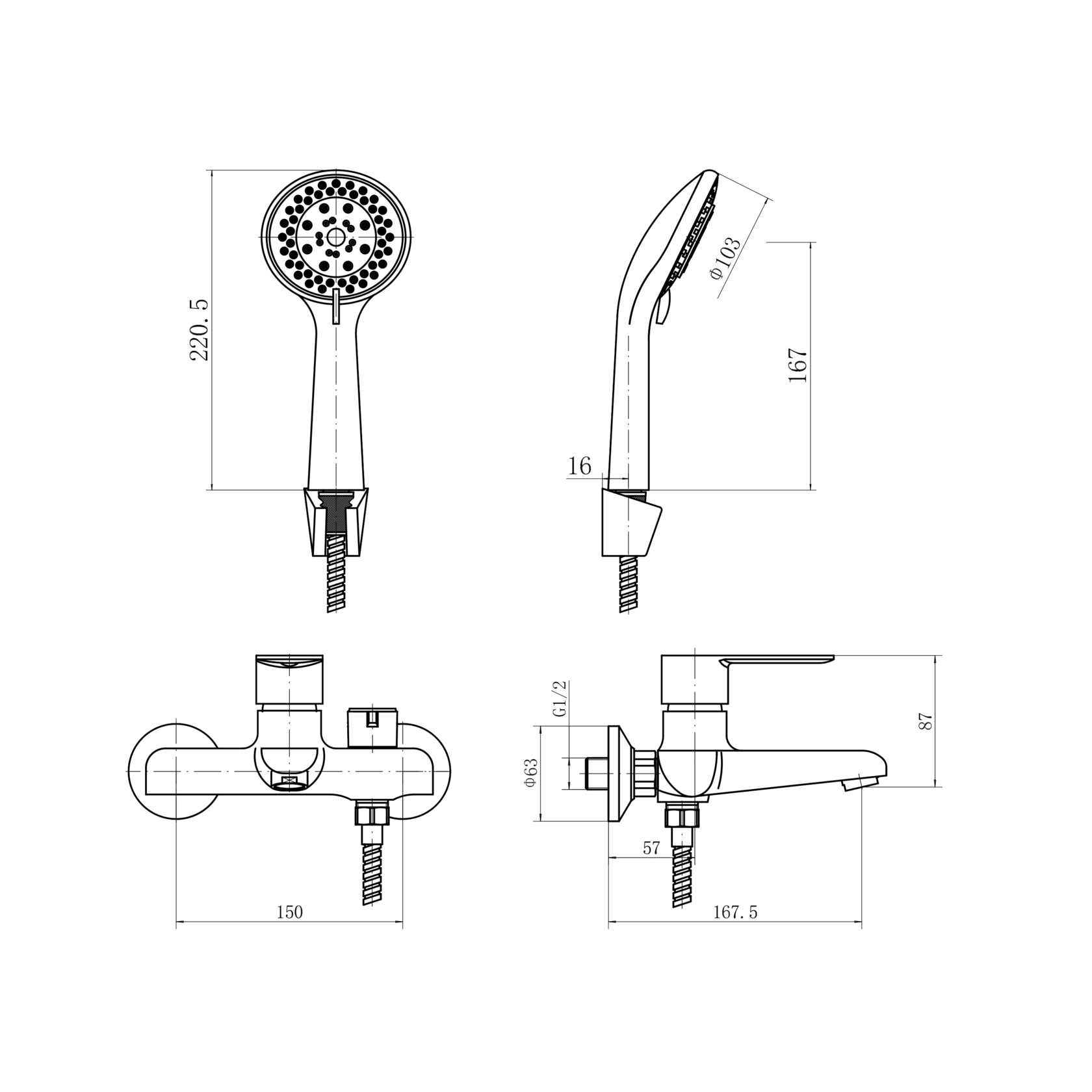 смеситель ванно-душевой с душевым гарнитуром