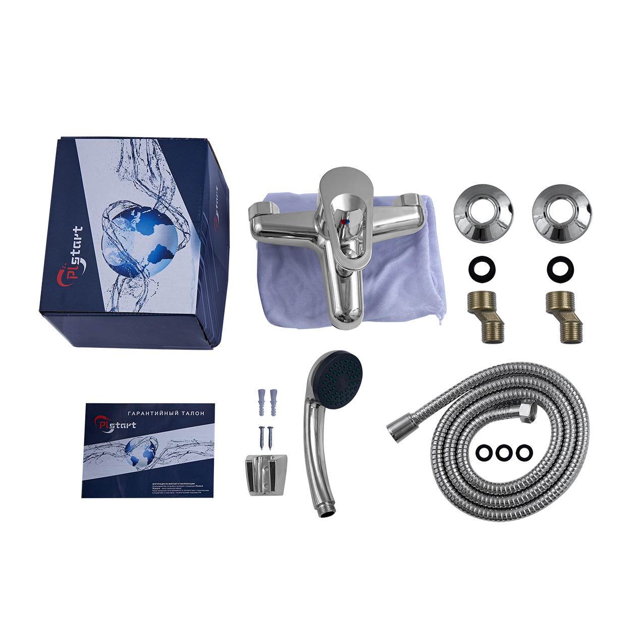 Смеситель для ванны и душа Plstart с душевым комплектом хром (PL3206)