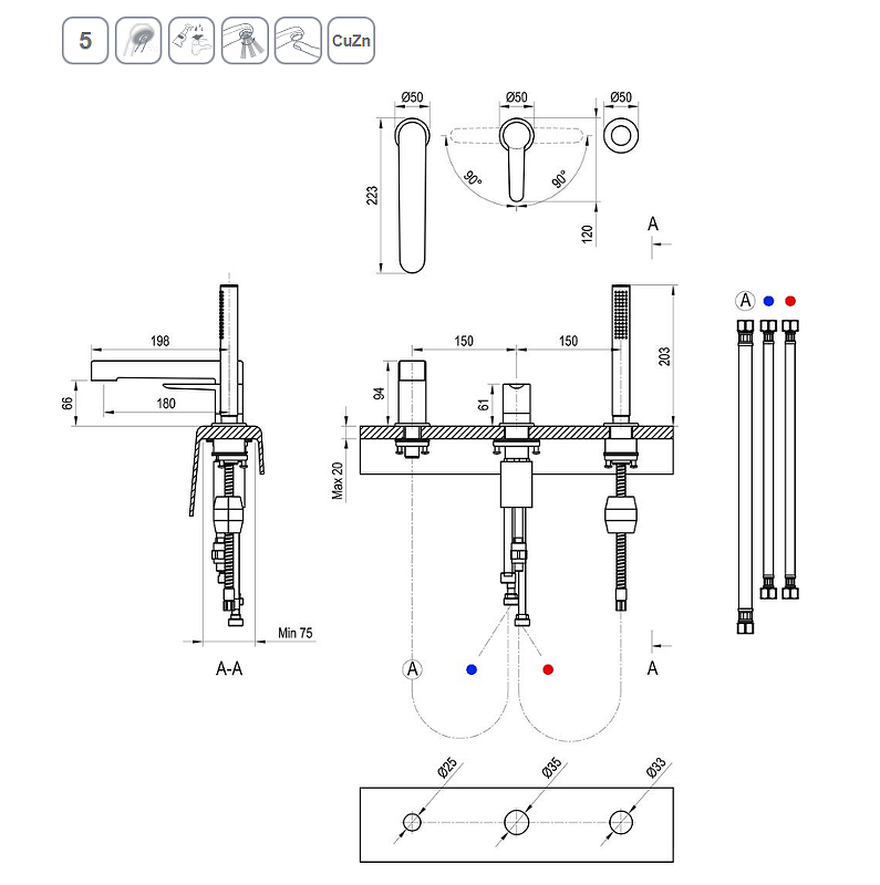 Смеситель для ванны и душа Ravak каскадный PU 026.20 черный (X070186)