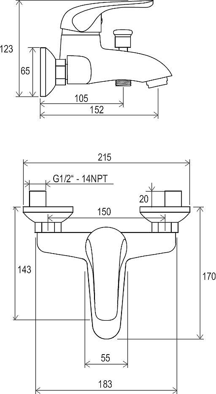 Смеситель для ванны и душа Ravak Rosa RS 022.00/150 хром (X070011)