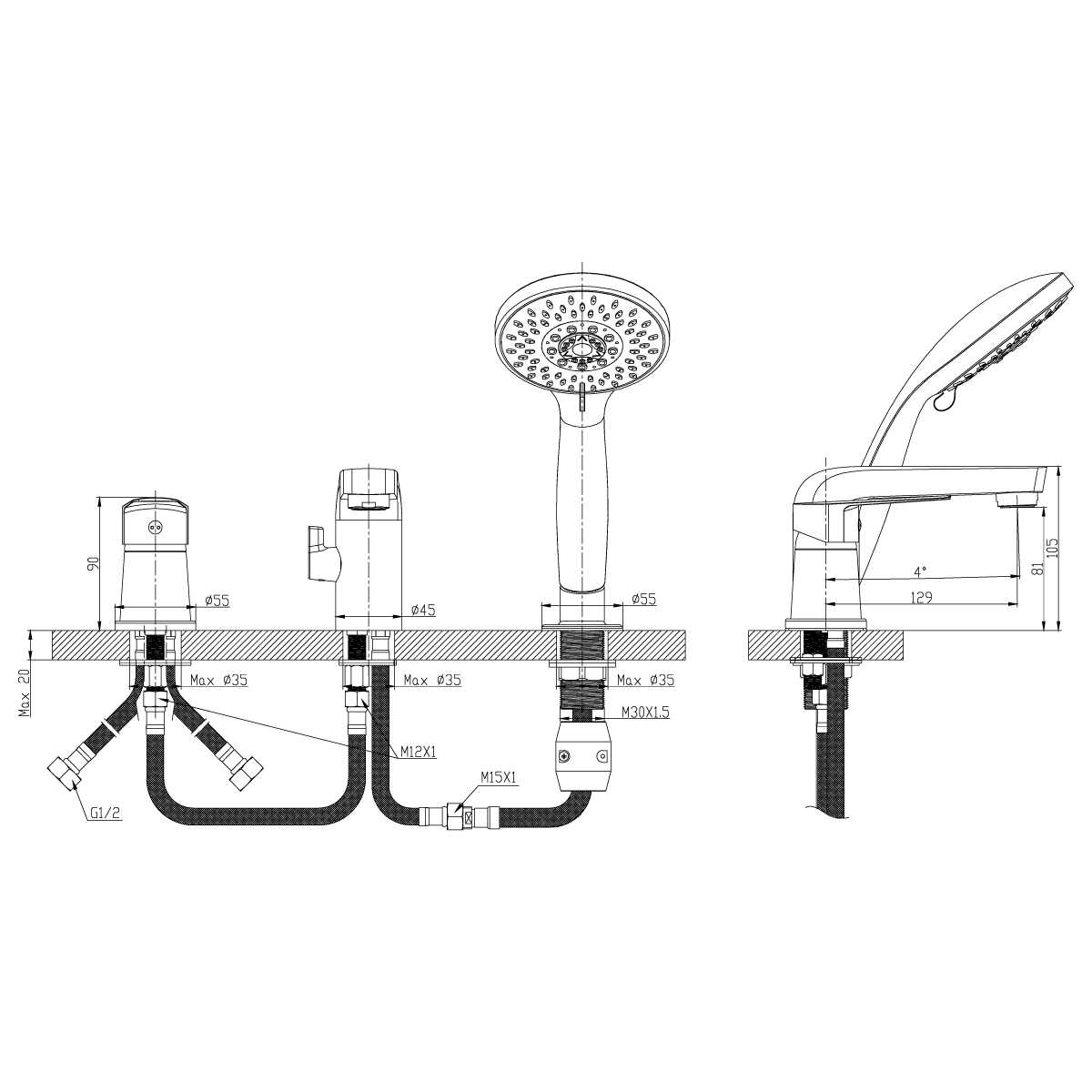 Смеситель для ванны и душа Rossinka S35-39 с душевым комплектом (S35-39)